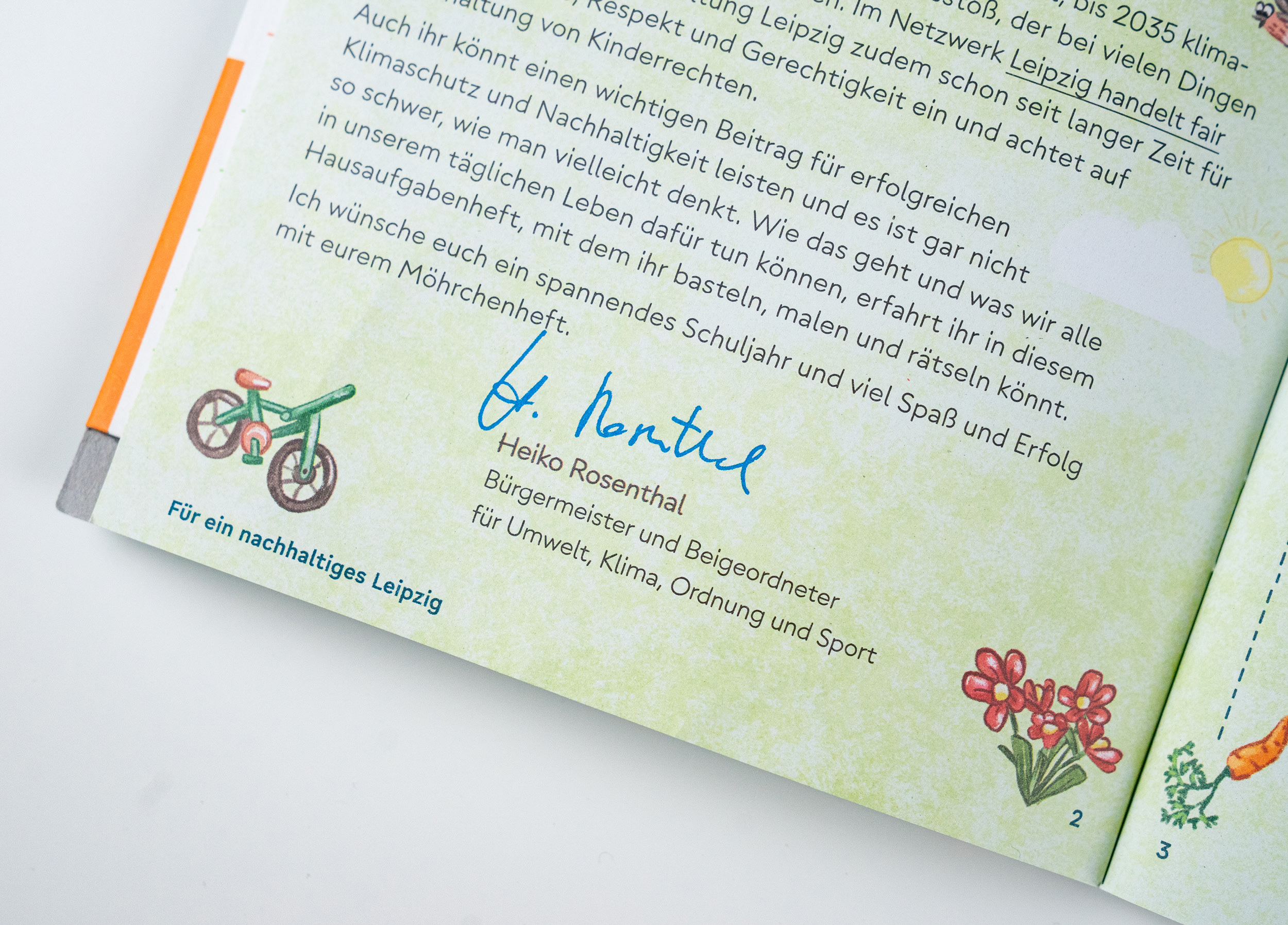 Das Möhrchenheft für Ihre Region! Dieses Hausaufgabenheft für Klasse 1 bis 4 kommt mit zehn liebevoll gestalteten Themenseiten und individuellen Anpassungen. Entsprechend der Ausgabe finden außerschulische Bildungspartner:innen sowie regionale Termine und individuelle Sonderseiten Platz im Heft. Erhältlich in den vier Ausgaben Umwelt, Fair, Klima und Natur.